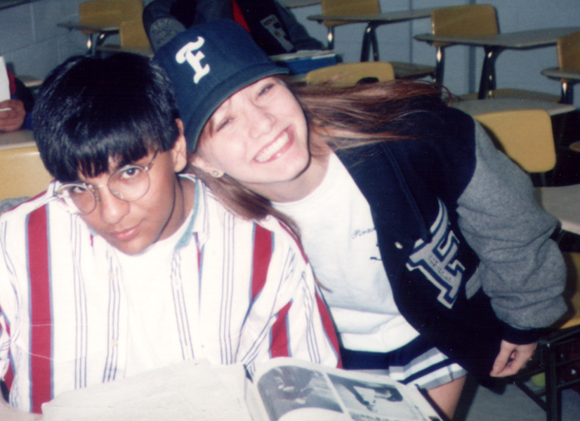 Roxanne with Tracy Diedrick (l) and Amanda(m) in history class junior year. |